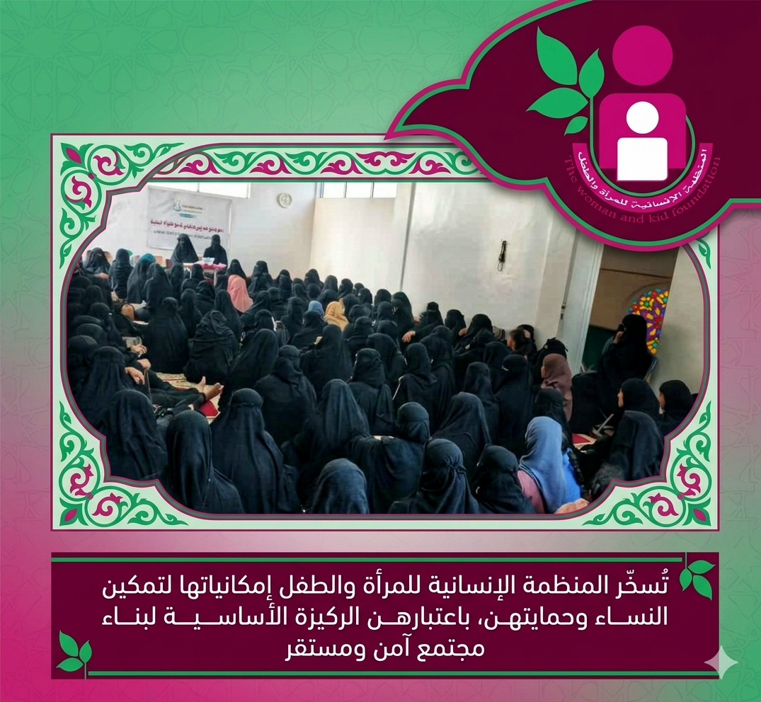 تُسخّر المنظمة الإنسانية للمرأة والطفل إمكانياتها لتمكين النساء وحمايتهن، باعتبارهن الركيزة الأساسية لبناء مجتمع آمن ومستقر